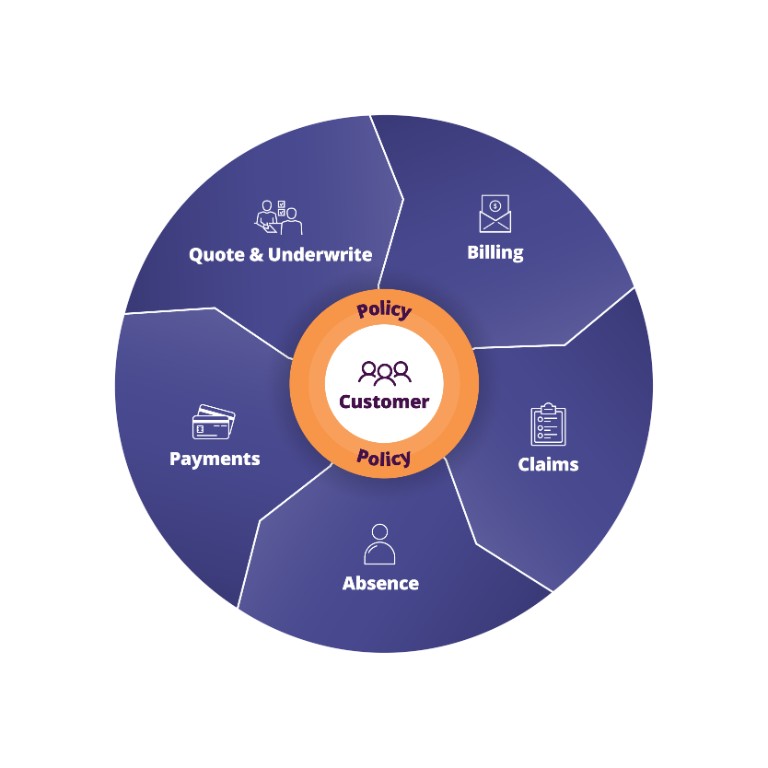 The complete policy administration system for an insurer’s source of truth, managing the full lifecycle and all transactions and interactions at both group and member level.