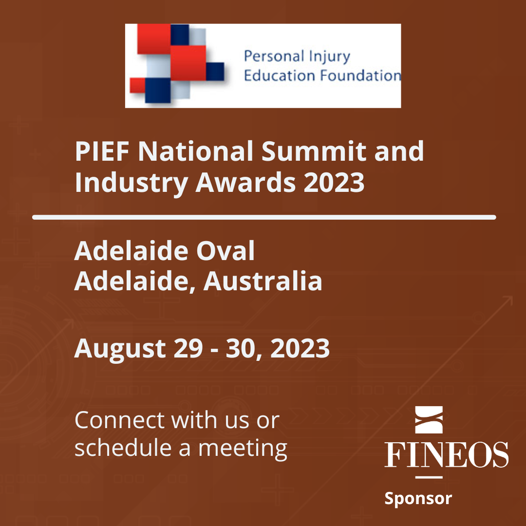 We are pleased to announce that FINEOS is a sponsor at the PIEF National Summit and Excellence in Personal Injury & Disability Management Awards for 2023 taking place at the iconic Adelaide Oval, Adelaide, Australia on August 29 and 30, 2023.