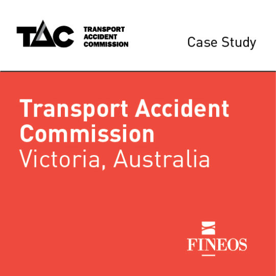 The Transport Accident Commission (TAC) is the Victorian Government social insurer, set up to pay for treatment and benefits for people injured in transport accidents, promote road safety and improve Victoria’s trauma system. TAC uses a case tier model to serve customers effectively whether they are in a rapid recovery, supported recovery or long-term support for independence scenarios. The new FINEOS core solution supports straight through processing of claims for rapid recovery clients, freeing up TAC’s staff from low value administrative tasks and allowing them to focus on getting more seriously injured clients’ lives back on track.